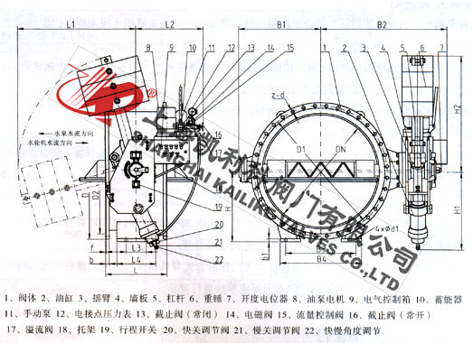 1、本閥由閥門本體、傳動機構、液壓站、電控箱等四部分組成。